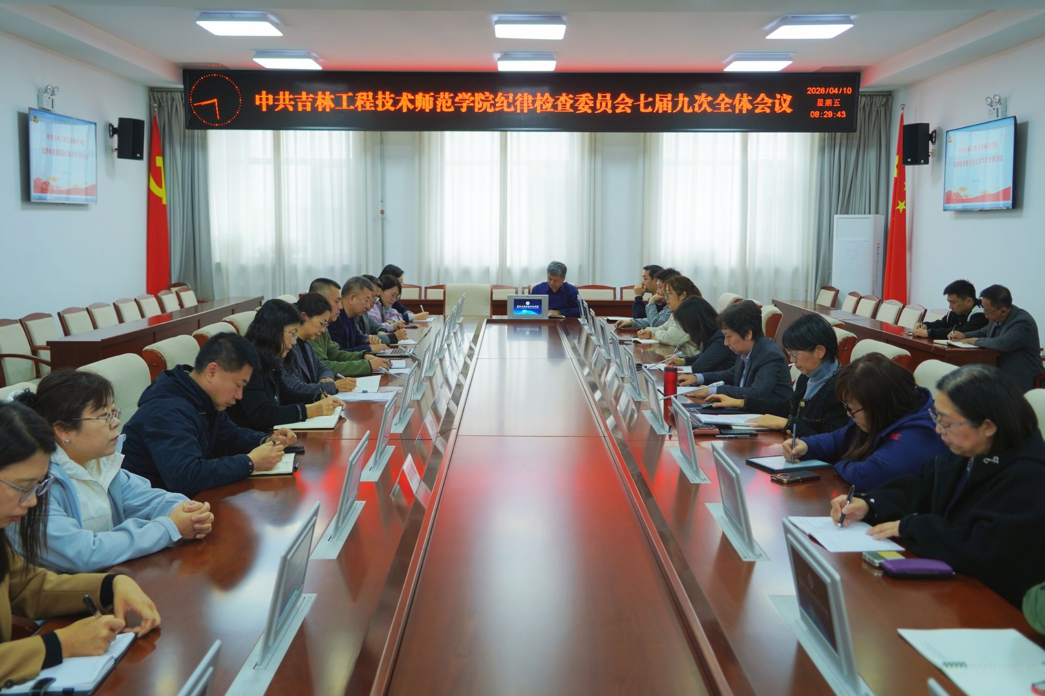 2026年4月10日,学校纪委召开七届九次全体会议。学校纪委书记、监察专员马晓春主持会议。